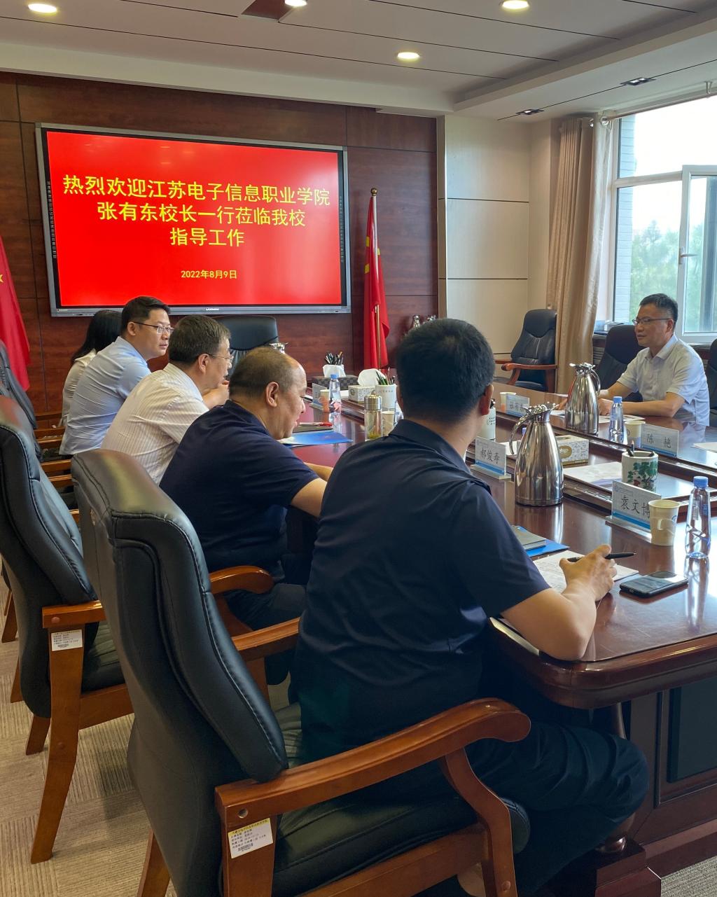 8月9日下午3:30,江苏电子信息职业学院校长张有东、学生工作处处长陈艳来校调研。学校党委副书记、校长王生铁主持召开座谈会,党政办公室和相关二级学院负责人陪同参加...