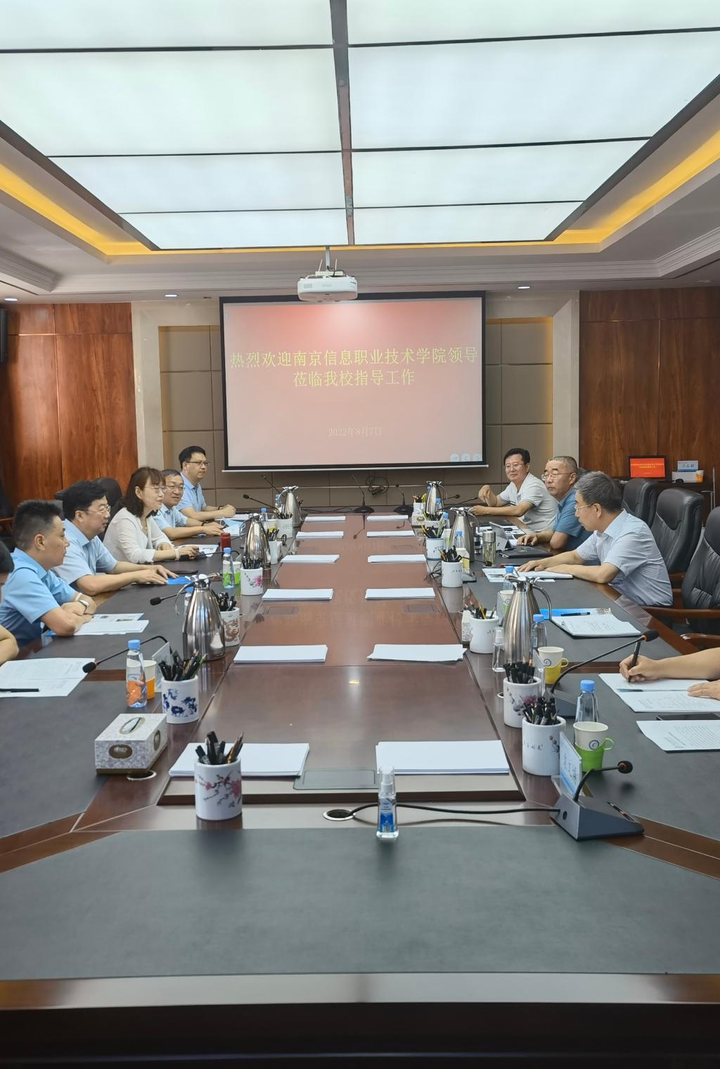 8月7日上午9:30,南京信息职业技术学院校长田敏,党委委员、副校长徐建俊一行7人来校调研。学校党委副书记、校长王生铁,党委委员、副校长恩和门德出席并会谈。党政办公...