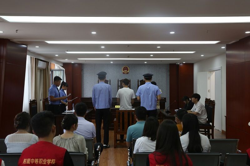 讲座结束后,师生们来到模拟法庭,在这里上演了一场别开生面的“庭审”。“现在开庭!全场起立!”随着法槌敲响,一场由学生扮演的模拟法庭庭审正式开始。学生们分别扮演法官、检察官、律师、被告人等角色,按照真实的庭审程序进行模拟审判。从宣读起诉书、举证质证、法庭辩论到宣判结果,每一个环节都严谨有序,学生们认真投入,仿佛置身于真实的法庭之中。