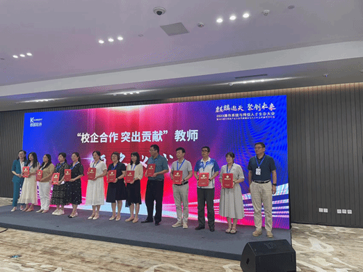 会议中举行了第二、三批“麒麟工坊”的授牌仪式,工业和信息化部教育与考试中心培训处谭志彬处长及工业和信息化部教育与考试中心培训处咸汝平副处长出席此次授牌仪式,beat365获第三批“麒麟工坊”共建院校。授牌仪式结束后,举行了““校企合作 突出贡献”教师颁奖,我院路颖老师荣获此奖。
