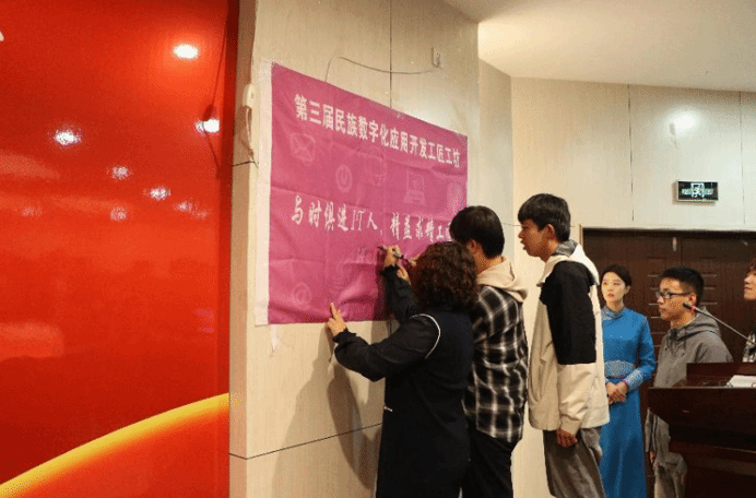 随着开班仪式议程的推进,王晓燕副院长、东软管玉明经理和学生代表签订ICT产品测试工匠工坊协议,王晓燕副院长、巴特尔工程师和学生代表签订民族数字化开发工匠工坊协议,履行契约精神。