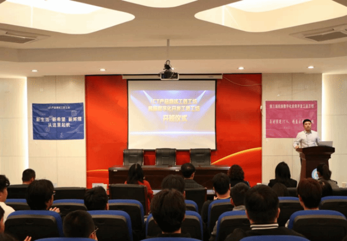 江苏一道云科技发展有限公司巴特尔工程师向老师和同学们介绍了工匠工坊的培养模式及管理方式,以此来鼓励同学们全心投入到学习和实践中,同时希望工坊学生能够严于律己,以身作则,相互提携,共同进步。