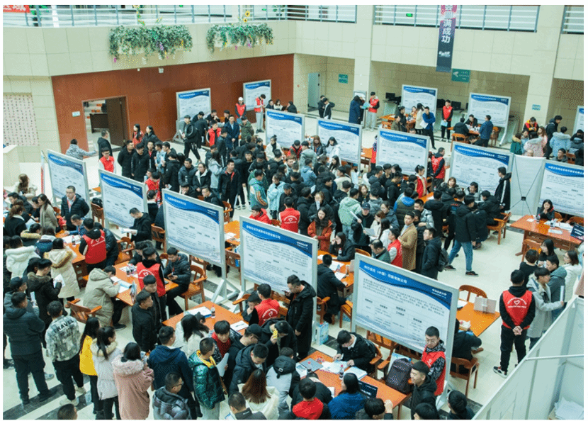 启动仪式后,2019年华为人才生态研讨会在图书馆213会议室举行,企业和兄弟院校的领导就人工智能等新专业建设探索与实践,重构信息平台、建设云中大学 等问题进行了研讨。同时,双选会在图使馆二楼吸引了各校众多毕业生。本次双选会充分结合学校毕业生专业及就业意愿,提前发布需求信息,认真筛选招聘企业,层层保障现场双向选择的精准度,充分利用“校企合作、产教融合”平台,对我院拓展就业渠道和市场提供了空间和保障。