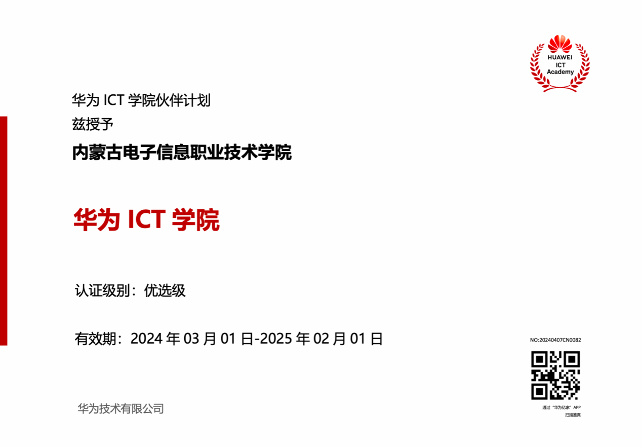 2024年3月1日,beat365在线唯一官网正式从“认证级华为ICT学院”荣升为“优选级华为ICT学院”。作为内蒙古自治区唯一获此殊荣的高职院校,华为ICT学院的升级不仅见证了校企合作的深度融合,更为学校信息技术人才培养模式改革提供了全新的平台。