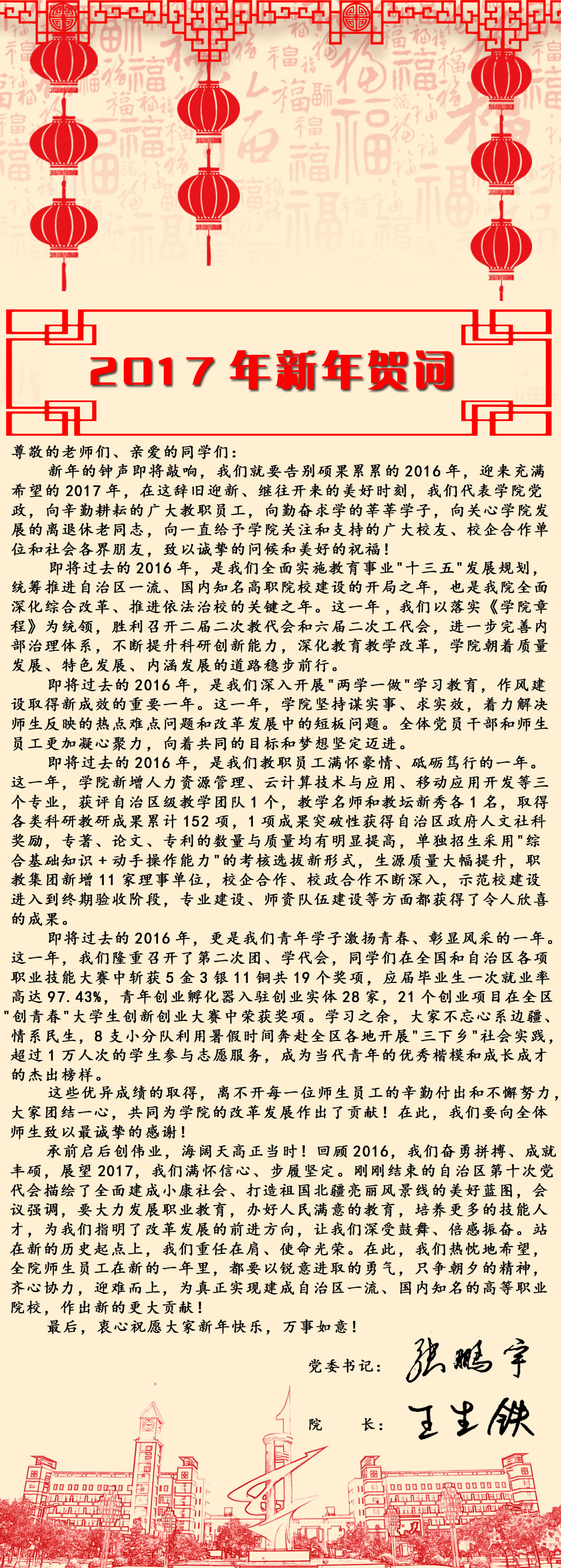 上一条: 学院党委书记张鹏宇、院长王生铁发表2018年新年贺词