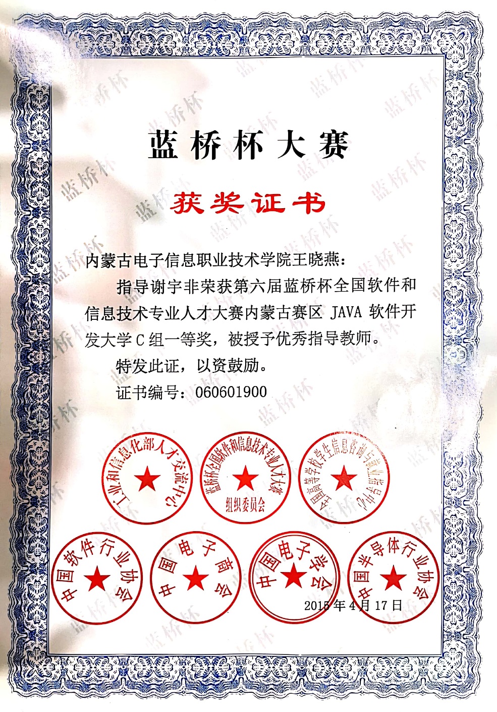 蓝桥杯全国软件和信息技术专业人才大赛内蒙古赛区一等奖