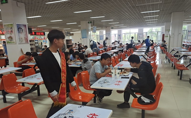 与此同时,志愿者们在执勤过程中友情提醒每一位就餐的学子以身作则、适量取餐、杜绝浪费。