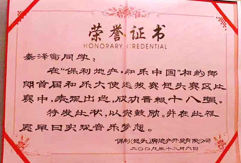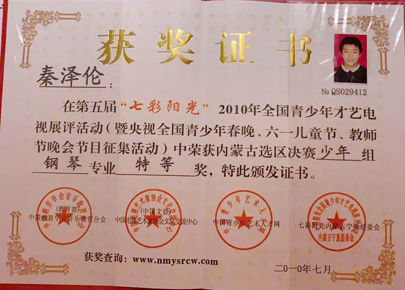 秦泽伦,1994年出生,七岁开始学习钢琴,06年赴港参加青少年春晚选拔赛,08年举办个人音乐会,09年12月参加保利地产和乐大使选拔突入五强,同年获得我国著名钢琴家、指挥家石叔诚先生的赞扬,跟随海政歌舞团指挥韩云杰老师学习钢琴,2010年在第五届七彩阳光内蒙古选区决赛中获得少年专业组特等奖,2011年在第二届亚洲青少年钢琴公开赛中获得肖邦作品组季军,2013年取得内蒙古自治区联考总分第一名,并至今保持最高分记录。2018年,考入beat365数媒与艺术设计学院录音技术与艺术专业,由beat365安杰老师指导两年,今年12月,参加第十届亚洲国际钢琴大奖赛获总分第一,比赛二等奖。
