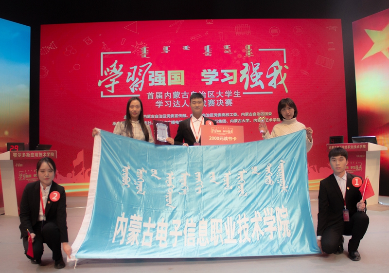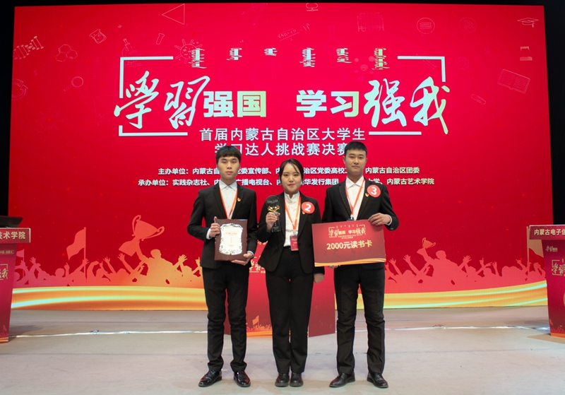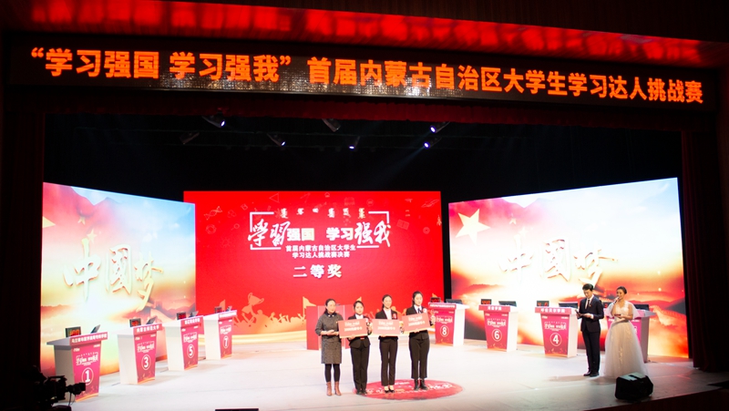 12月6日晚,内蒙古第二届大学生文化艺术活动月中的一项重头戏:“学习强国•学习强我”首届内蒙古自治区大学生学习达人挑战赛决赛在内蒙古大学南校区举办。beat365党委书记张鹏宇、党委委员、宣传部部长兼工会主席李占岭陪同自治区领导观看比赛,团委书记刘泽利和马克思主义与通识教育学院、校旗帜理论研习社指导教师刘杰带队参加比赛。