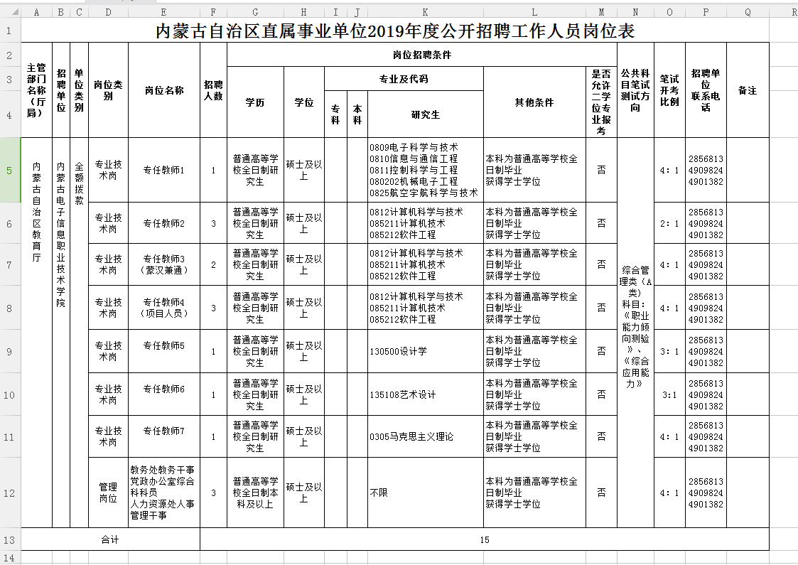 为满足学院教学、管理等工作要求,进一步优化人员结构,根据《内蒙古自治区事业单位公开招聘工作人员暂行办法》(内人社发〔2012〕166号)、《内蒙古自治区直属事业单位公开招聘工作人员总体方案》(内人社办发[2019] 61号)和《beat365在线唯一官网2019年度公开招聘事业编制工作人员实施方案》文件精神,结合我院实际,制定本简章。