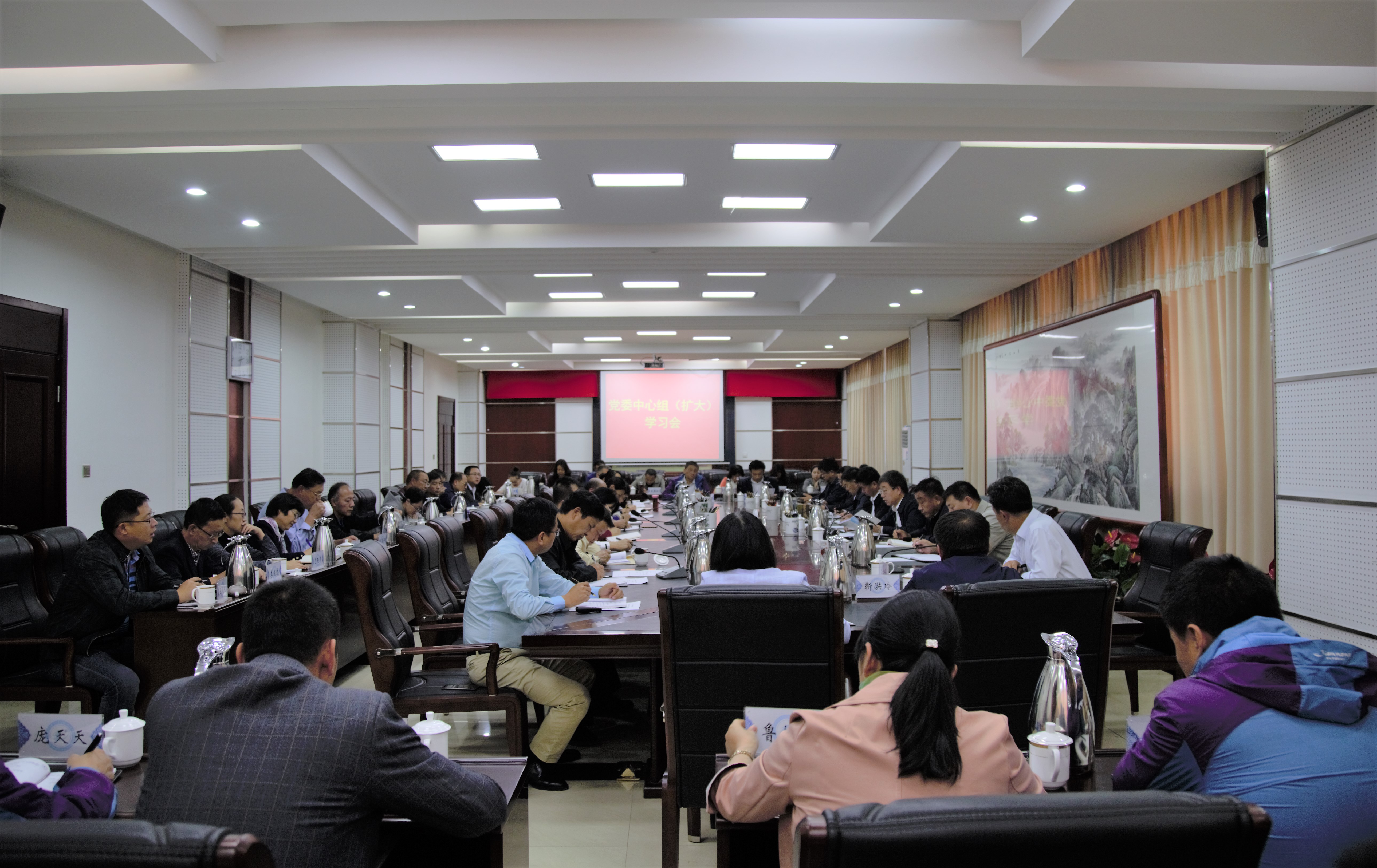 9月29日下午,学院党委中心组(扩大)在会议中心一号会议室召开集体学习会议,传达学习自治区“迎接党的十九大”安全稳定工作会议精神,组织与会同志进行外出考察学习经验交流研讨。