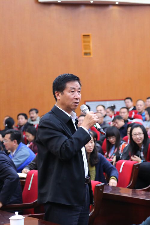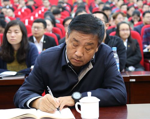 学院党委书记张鹏宇强调,党的十九大,是在全面建成小康社会决胜阶段、中国特色社会主义进入新时代的关键时期召开的一次十分重要的大会。习近平总书记所作的报告高瞻远瞩,气势恢宏,总揽全局,振奋人心!全院师生员工要高度关注十九大的各项议程,以“两学一做”学习教育专题学习研讨为抓手,开展以学习贯彻党的十九大精神和习近平总书记关于教育工作的重要讲话,特别是关于职业教育的重要批示精神为专题的学习研讨活动,迅速掀起学习领会十九大精神和十九大报告的热潮,并以十九大精神为指引,推动全院各项工作开展,以更加优异的成绩向十九大献礼。