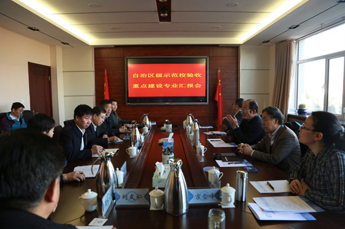 12月20日至21日,由自治区教育厅陈俊杰副巡视员带队,原内蒙古化工职业学院院长霍天强教授任组长的自治区专家组,对我院自治区示范性高等职业院校建设项目进行了验收。内蒙古农业大学职业技术学院副院长冯贵宗教授,内蒙古建筑职业技术学院科技处处长李晓芳教授,内蒙古机电职业技术学院机电工程系党总支副书记刘志文副教授等专家参加了验收工作。