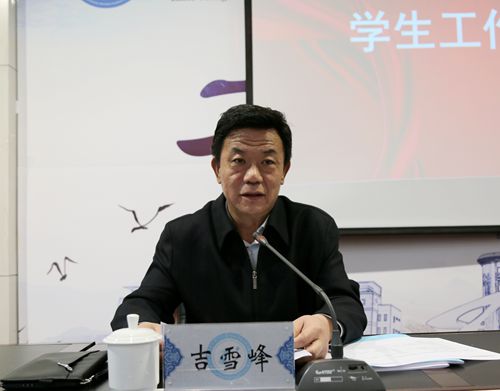 吉雪峰在会上作了2017年学生工作报告与未来工作展望。吉雪峰指出,在过去的2017年,学院的学生工作取得了一些成绩,表现在:一是学生工作队伍建设不断加强;二是制度建设不断完善;三是学生发展服务水平不断提高;四是院系两级管理深入推进;五是智慧校园建设成效明显。吉雪峰在肯定成绩的同时也对学工队伍提出了更高的要求:一要善于学习,把握工作重点,在工作实践中学习;二要认真工作、各负其责、协同增效;三要转变观念,提升服务意识;四要顾全大局,打造出素质过硬的学生工作团队;五要提高层次,树立学生管理服务品牌。