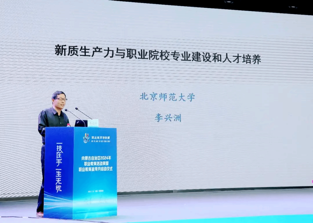 启动仪式结束后,北京师范大学教育学院李兴洲教授作题为“新质生产力与职业院校专业建设和人才培养”的专题讲座,以新质生产力为主题,以职业教育为主线,深刻阐述了新质生产力的科学内涵与实践要求,并结合新质生产力与教育的关系,系统分析了当前职业教育适应新质生产力发展变化、改革创新的思路、路径与策略。