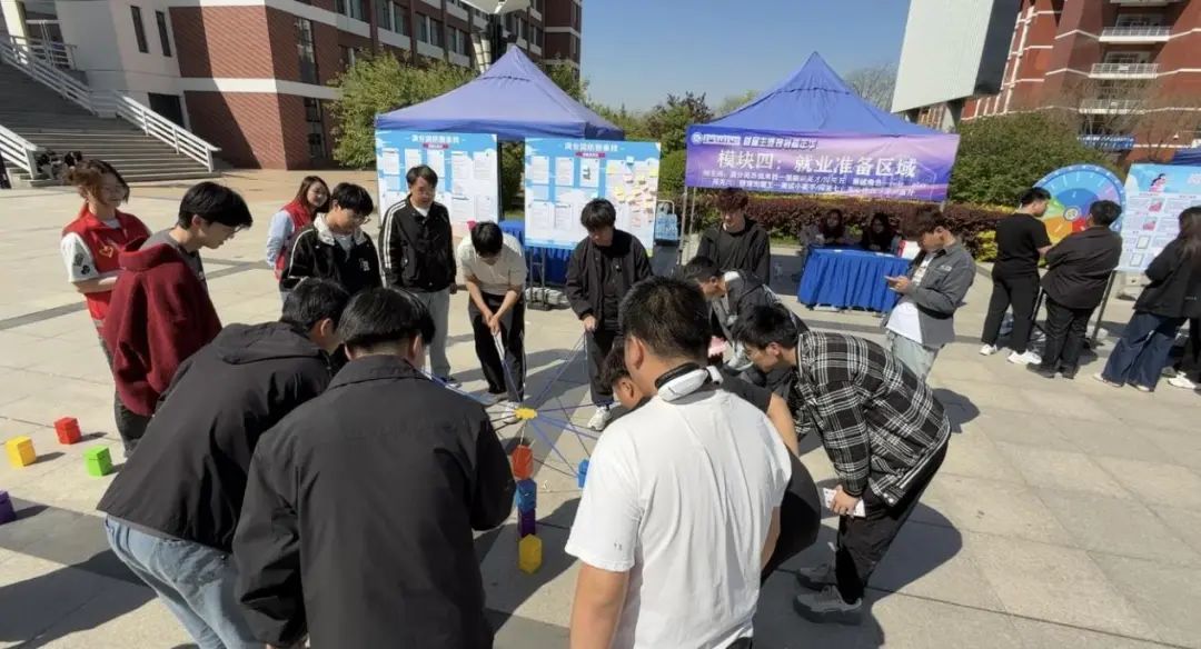 活动现场,智能职业测评区、沉浸式模拟面试舱、创意创业沙盘推演等特色项目吸引了众多学生驻足体验。同学们在AI智能算法生成的个性化职业报告中明晰自我定位,在模拟职场场景中锤炼应变能力,现场互动热烈,职业规划的种子正悄然在青春的土壤中生根发芽。