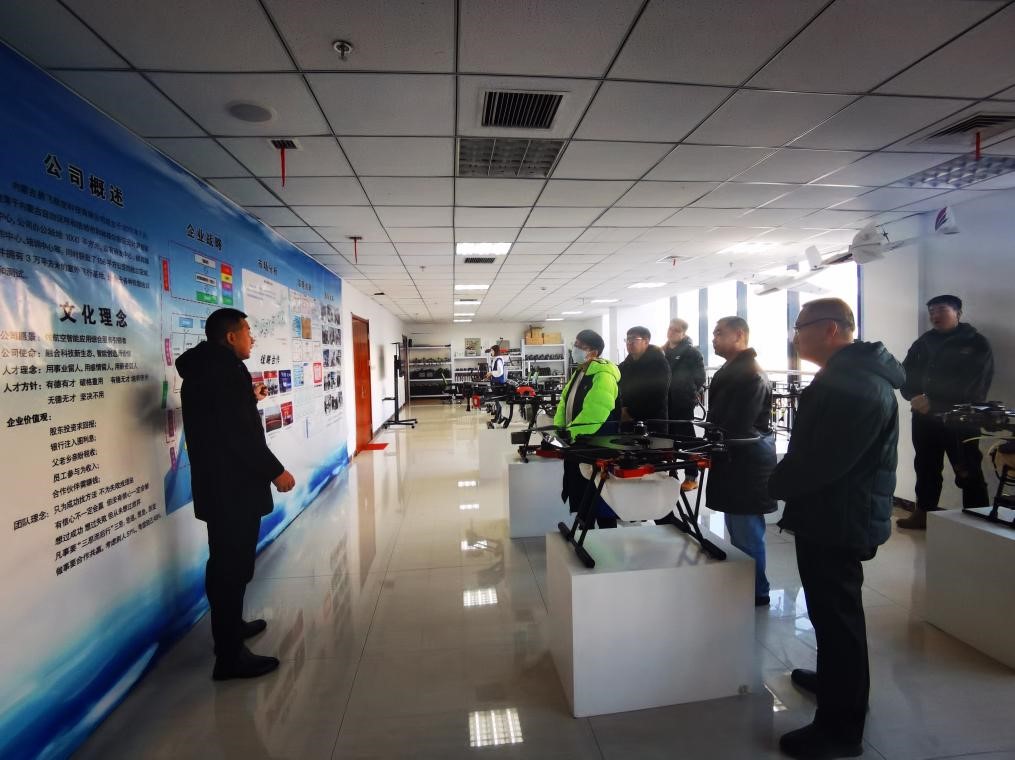 13日上午,秦婷一行首先来到内蒙古易飞航空科技有限公司。公司经理李峰陪同参观了公司研发中心、模拟操作中心、培训中心、室外飞行基地等,并向大家详细介绍了企业战略,双方对下一步在科学研究、产品开发、创新创业教育、1+X证书、无人机产业学院共建等方面达成了共识。秦婷一行还看望了在企业工作的2020届无人机专业毕业生鲁宇同学和2021届无人机专业毕业生魏剑伟同学,并与毕业生亲切合影。