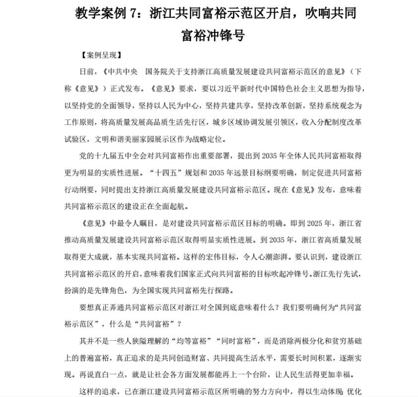 《习近平新时代中国特色社会主义思想概论》教学案例7:浙江共同富裕示范区开启,吹响共同富裕冲锋号