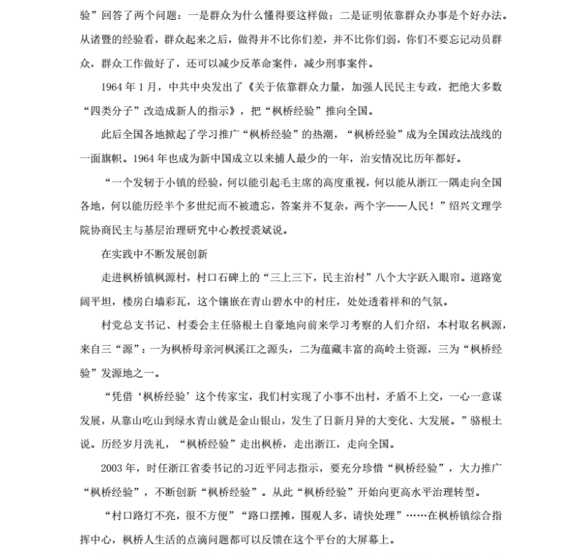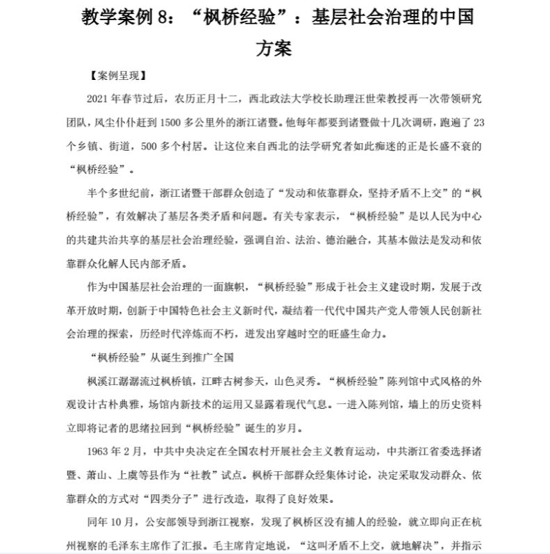 《习近平新时代中国特色社会主义思想概论》教学案例8:“枫桥经验”:基层社会治理的中国方案