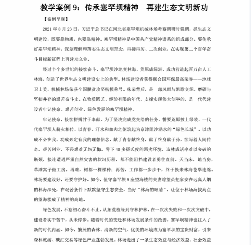 《习近平新时代中国特色社会主义思想概论》教学案例9:传承塞罕坝精神 再建生态文明新功