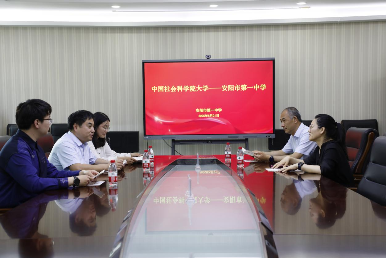 招生组刚踏上安阳土地,就受到了安阳市第一中学党委书记徐珍玲、副校长陈朝阳等领导的热情接待。在随后开展的座谈中,徐珍玲书记向招生组一行介绍了安阳市第一中学的悠久校史、优良传统、优秀成绩和办学特色。徐书记表示,安阳一中在文科领域一直是强项,学校拥有高水平的师资队伍和高素质的学生群体,学校始终坚持五育并举、综合发展的培养方法,既要求学生精通其所学知识,又重视所学科目综合素质的和能力的掌握,同时要求学生重视实践,成为对社会有用的人才。在这些理念的指导下,安阳一中每年高考成绩优异,向高校输送大批志存高远、不尚浮华、崇尚科学的优质人才。